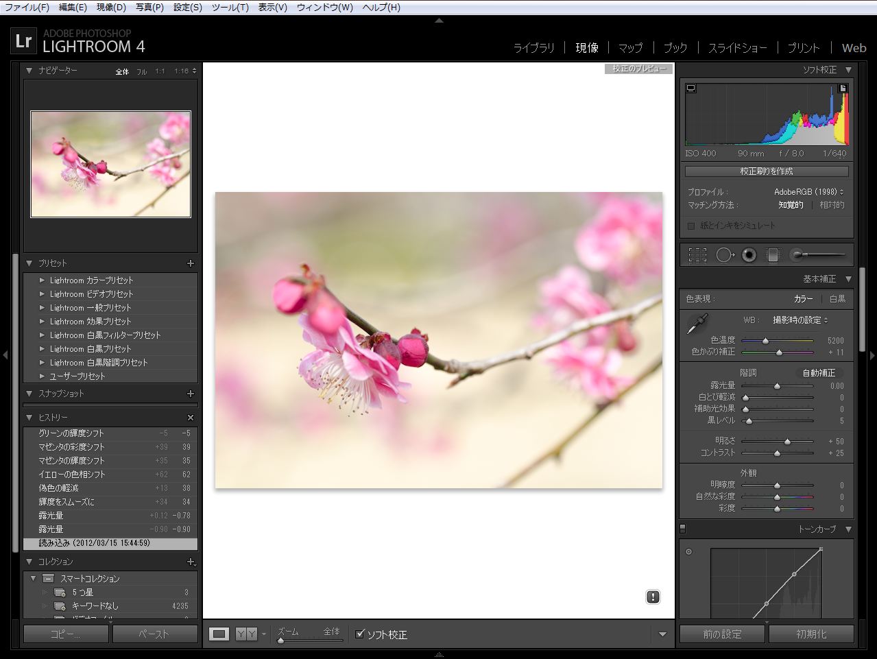 使ってみると、Lightroom3はPhotoshopに比べて写真補正に特化しているソフトで、なかなか使い勝手がよく特に以下の点が気に入っています