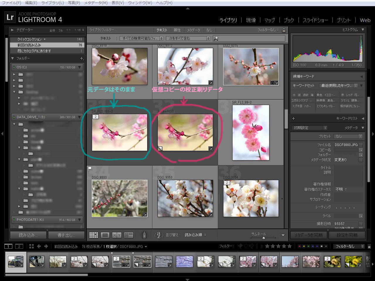 使ってみると、Lightroom3はPhotoshopに比べて写真補正に特化しているソフトで、なかなか使い勝手がよく特に以下の点が気に入っています