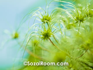 写真は、クレマチスの種の写真です。雨が降っていなくても、水分を含んだ空気で植物たちは潤ってイキイキとしています♪